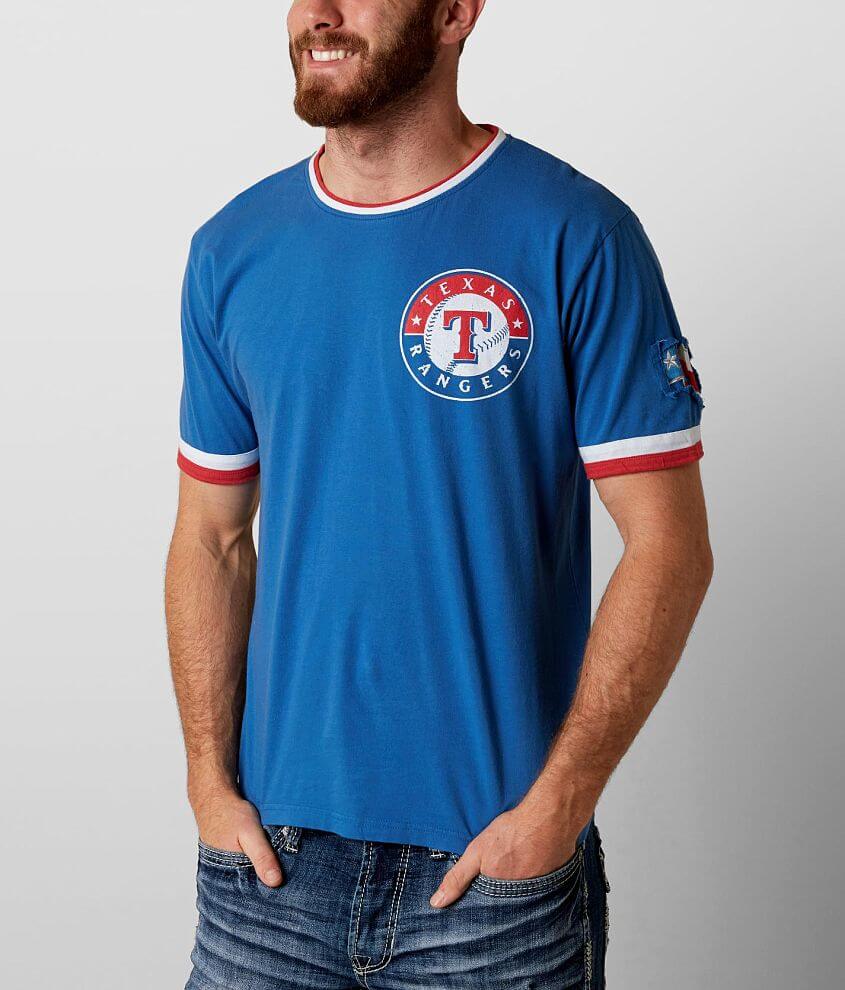 Mens 47 Gray Texas Rangers Archive Ringer T-Shirt 2199 See Product Womens Nike White Texas Rangers Wordmark Colorblock V-Neck T-Shirt 2999 See Product Mens Nike Royal Texas Rangers Legend Batting Practice Logo Performance T-Shirt 2249 See Product Youth Under Armour Royal Texas Rangers In Team Colors Synthetic T-Shirt 2249 See Product. G-III for Her Womens Texas Rangers Julia Tie Dye Short Sleeve T-Shirt. Available in adult small - 2xl.